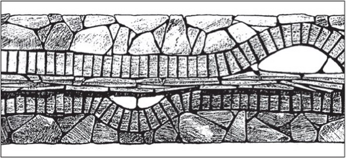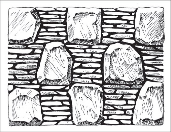 Не будем при этом путать каменные кладки с каменными облицовками, которые тоже можно типизировать. Разница между кладками и облицовками состоит в том, что кладки несут какой-либо вес сооружения, они являются базовыми частями сооружения. Облицовки же держат на себе только свой вес, да и то не во всех случаях.