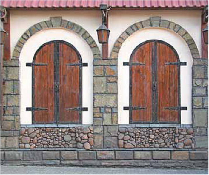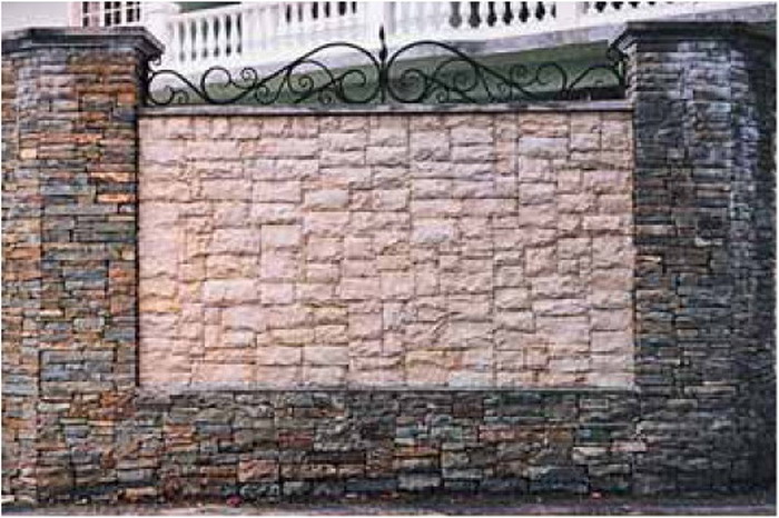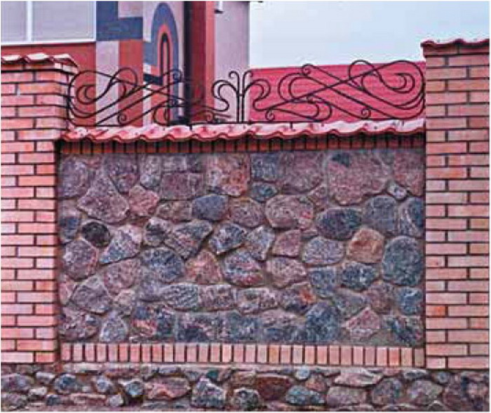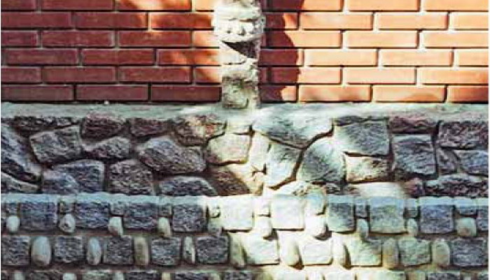 Это один из многочисленных приемов комбинированной кладки в отдельной ее части. Комбинирование может осуществляться изменением метода укладки камня, применением другого цвета, другого материала по форме или породе. Комбинированной также можно назвать и ту кладку, где один и тот же материал уложен по-разному по всей длине кладки, но не хаотично, а ритмично повторяемыми частями, создавая стильность или мотивность кладки, или же создавая орнаментальность. В последнем случае она будет типизироваться декоративная каменная кладка или декоративно-орнаментальная — по преобладающему признаку. Типы чего-либо определяются по наличию существенного качественного признака. Вид же — это всегда более совокупное понятие, относящееся не к признакам предмета, а к самому предмету или существу. Смешанные или комбинированные кладки могут быть весьма разнообразными. И при этом каждая из них может быть как-либо названа. Поэтому смешанные и комбинированные кладки, как и декоративные, полилитные, монолитные кладки носят несколько совокупный характер и их целесообразно выделить в подвиды среди системно-культурных кладок.
