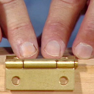 Подгоните теперь створку к петлям, постукивая с ее внутренней стороны резиновым молотком в направлении стенной рамы, чтобы таким образом отпечаталось копиркой место для петель. Можете приложить к раме створки рейку или пласт резины и воспользоваться в этих целях простым молотком, чтобы не испортить поверхность.