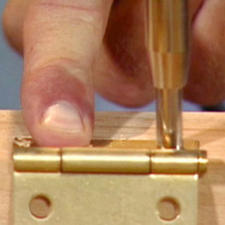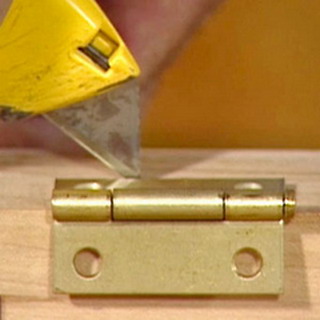 После этого, стамеской срезаем место под петли, и устанавливаем их саморезами. Учтите, поверхность петли должна совпадать с поверхностью створки, иначе зазоров и неудобств с отворением не избежать.