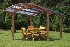 18. В проекте навеса должны учитываться как временные, так и постоянные нагрузки. Если в вашей местности осадки и сильный ветер — нередкое явление, лучше всего сделать кровлю навеса обтекаемой.
