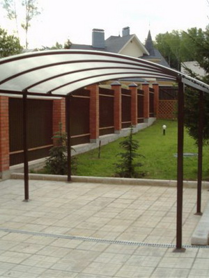 Кроме пристроенных навесов, могут быть и отдельно стоящие, которые часто используются вместо гаража.