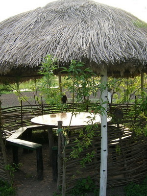 Навес, сделанный своими руками, можно как пристроить к жилому дому, так и соорудить в стороне от последнего. Крышу навеса можно выполнить из камыша или другого материала. Постройка спасет от жары в летний зной и защитит от дождя в непогоду.