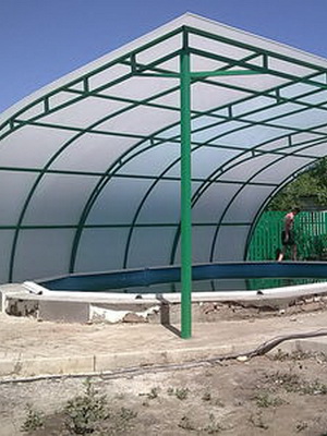 Монтаж навеса для бассейна своими руками сводится к выполнению простого каркаса из дуг. В процессе его возведения не понадобится специальных инструментов, а затраты материала будут минимальными.