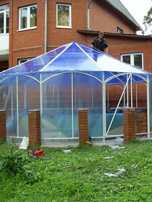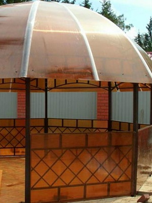 Поликарбонат для беседки подходит как нельзя лучше, так как этот материал обладает такими характеристиками, как легкость и прочность.
