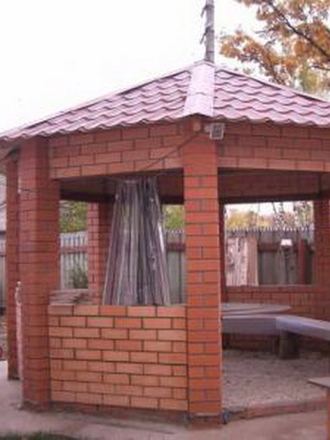 Материалом для беседки из дерева (обязательно на сухом грунте) чаще всего является красный кирпич. Рекомендуется использовать полнотелый, влагостойкий и хорошо обожженный кирпич.