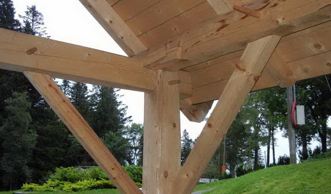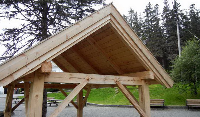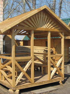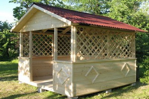 При постройке беседки из бруса готовые детали сооружения покрываются лаком. Для того чтобы такая беседка долго оставалась аккуратной, панели и пол покрываются лаком с обеих сторон.