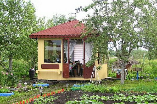 Совет. Для остекления беседок можно использовать не только силикатное, но и органическое стекло. Переплеты рам при этом могут состоять из множества ячеек, что позволит комбинировать материалы или использовать стекло небольших размеров.