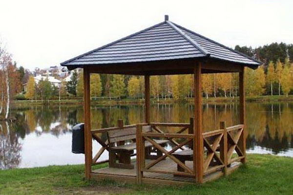 Как видно на фото, дачные беседки из дерева, относящиеся к разряду высоких, возвышаются более чем 2 м, а площадь основания их невелика. Поэтому, чтобы конструкция не завалилась, ей требуется очень прочный свайный фундамент.