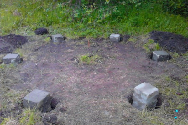 1. Наиболее подходящим для этого вида беседок для дачи является скальный либо песчаный грунт. После определения места для будущей беседки на расчищенном участке очерчивается нужный контур. Для этого в землю вбивается колышек, к нему одним концом привязывается шнур длиной 2,5 м. К другому концу этого шнура привязывается какой-либо острый предмет, после чего чертится круг, имеющий диаметр 4 м.