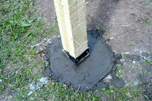 1. Для стоек нужно использовать деревянные брусья поперечным сечением 10 см. Опоры следует заглубить в почву на 40-50 см, а затем забетонировать.