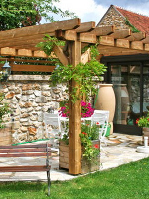 На начальном этапе освоения участка важно устроить навес в зоне отдыха. Обычно в это время растения, которые создают тень, уже посажены, однако они не достигли еще нужных размеров в высоту. В такой ситуации Деревянные перголы для дачи будут как нельзя кстати, и сооружать эту постройку необходимо как можно скорее. Расположить конструкцию нужно таким образом, чтобы, усевшись за стол под ее крышей, можно было наслаждаться прекрасным видом цветника, альпийской горки или водоема.