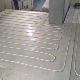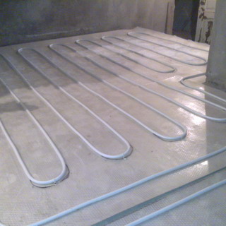 При укладке контура, позаботьтесь об отводах их концов в нужном направлении к источнику горячей воды, чтобы впоследствии не пришлось тянуть трубу через все помещение. Еще раз проверьте по уровню линии контура, удостоверьтесь, что трубы уложены ровно, после чего оставьте раствору время на высыхание и можно приступать к следующему этапу, заполнению стяжки.