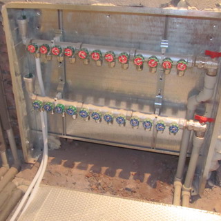 При любом типе источника горячей воды, весь успех сборки будет зависеть от качественных креплений, поэтому подойдите к этому очень и очень тщательно. В случае с газовым баком, позаботьтесь в первую очередь о надежности соединений газовой подачи. По возможности желательно провести трубы с газом вокруг периметра дома снаружи здания. Для работы с этим пригласите квалифицированного специалиста. Далее, соедините отводы концов контура в муфты распределителя: один конец комплекта контуров – один распределитель, второй конец контуров – второй распределитель. Каждый твод от распределителя в сторону водного пола, также должен иметь регулировочный кран.