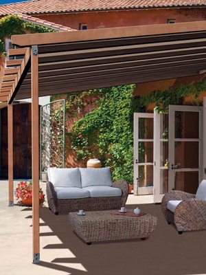 В южных регионах традиционно строят террасы без крыши, но чтобы придать этому месту отдыха более комфортный вид, можно оборудовать террасу деревянной перголой с вьющимися растениями. Это устройство затенит пространство и даст прохладу даже в самый жаркий летний день.