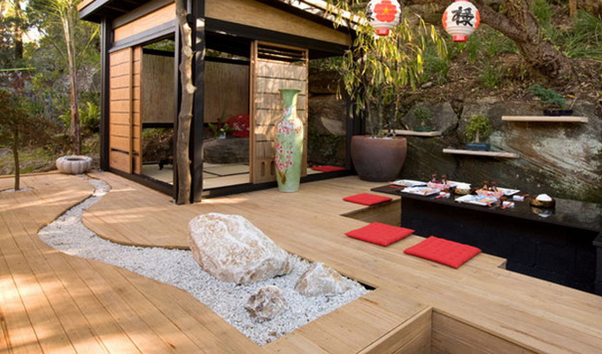 Такой уголок отдыха можно оформить в любом стиле на свое усмотрение — это может быть все что угодно, например миниатюрный японский садик.