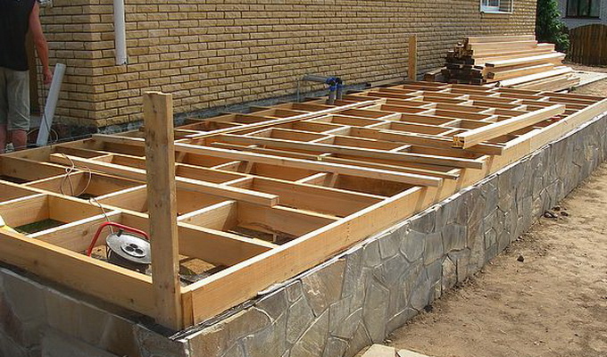 6. Для того чтобы построить террасу на даче, нужно сделать деревянную опалубку. В качестве материала для каркаса используются доски сечением 20 х 80 мм и брусья сечением 40 х 80 мм. Для крепления деталей применяются гвозди длиной 50-80 мм.