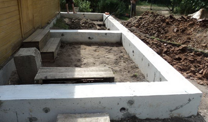 1. Перед тем как сделать террасу своими руками, возводится ленточный фундамент, толщина которого составляет 40-50 см. В боковых стенах на уровне пола делают отдушины. На зимний период они закрываются.
