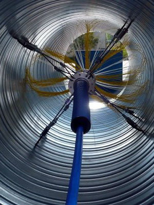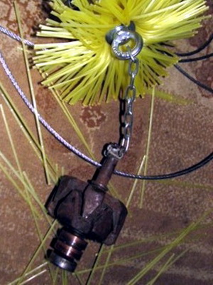 Трубочистный снаряд используется для устранения сложных завалов из строительных материалов (кирпича, бетона, щебня). Диаметр снаряда составляет 80-100 мм. В канал снаряд следует опускать аккуратно, чтобы не повредить его стенки.