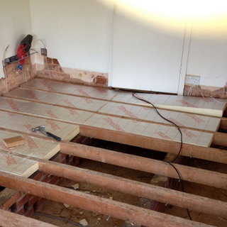 Если деревянный пол на лагах установлен без чернопола, то это следует исправить незамедлительно, так как, как бы вы не отапливали вашу квартиру, снизу будет вас все время окатывать холодным воздухом. Итак, осмотрим состояние лаг. Если вы заметите места гниения и грибковых наростов, то лагу желательно сменить, а если они незначительны, то соскоблите их рубанком или ножом. Далее по всему периметру лаг по нижней их части наносим обрешетку из реек 4Х4 см или 5Х5 см. После этого укладываем доски чернопола между лагами на прибитую обрешетку. Естественно, что для этого нам не нужен первоклассный древесный материал. Обрезки досок можно приобрести на лесопилках за гроши. Единственное требование, с них следует снять со кору, так как она является отличным жилищем для древесных червей, которые впоследствии нанесут урон всей вашей деревянной конструкции.