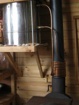 Нижнее размещение бака обеспечивает больший комфорт при наполнении его холодной водой, а также при заборе горячей воды. Нагрев воды в баке происходит быстрее, так как он торцевой частью выходит в топку, а с боков и снизу омывается горячими газами.