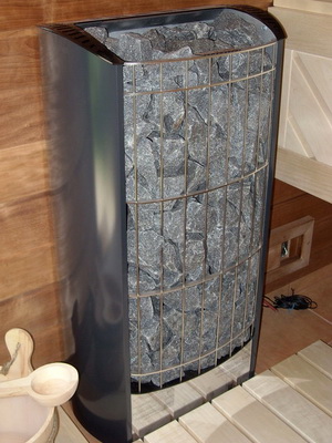В электрических печах-каменках для бани заводского производства нагрев камней происходит благодаря трубчатым электронагревателям, которые снизу входят в толщу каменной засыпки.