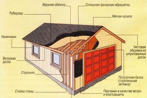 Далее необходимо выбрать способ крепления стропил на гараж — наслонные стропила в данном случае не подойдут, поскольку отсутствует средняя несущая стена, а крепление стропил к мауэрлату дает висячие стропила, соединенные в зуб. В итоге у кровли будет слишком низкий свес.