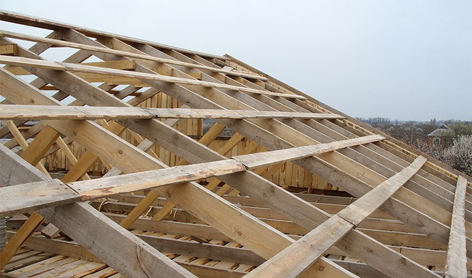 При креплении стропил на балочные перекрытия придется возводить целую стропильную ферму. Сделать расчет стропильной фермы можно исходя из сечения и шага стропил (стропильных ферм), но можно также взять за основу усредненное значение этих параметров, которое применяется к проектам небольших (до 100 м2) домов с простой двухскатной крышей.