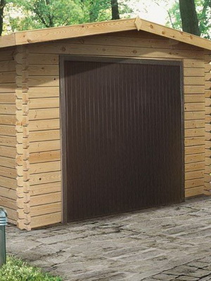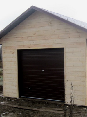 Если все постройки на участке выполнены из дерева, а хозяин желает, чтобы гараж не отличался по стилю от других строений, можно поступить следующим образом: построить гараж из кирпича, а затем обшить его имитатором бруса или бревен.