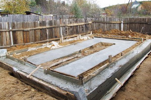 Выполнив такую подготовку, до того как залить фундамент под гараж, в опалубку следует заложить бутовые камни, после этого их необходимо залить бетонным раствором. Для этого щебень или сухой песок добавляется в цемент так, чтобы получилась одноцветная масса. Постепенно заливают полученную кашицу водой, постоянно перемешивая массу. Укладывается бетон поэтапно, выполняются слои шириной 10-15 см, каждый тщательно трамбуется.