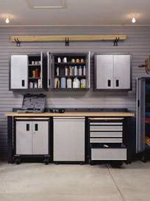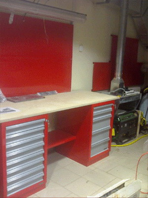 Эта тумбочка будет служить как для выполнения самых различных работ, так и для хранения инструментов. Она займет в гараже совсем немного места, а если постараться, то ее радующий глаз внешний вид будет украшать помещение.