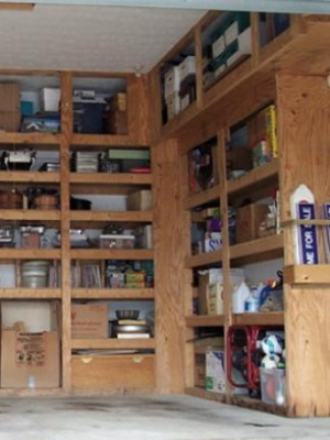 При устройстве стеллажа в гараже необходимо точно выдерживать углы и размеры. Предварительно на заготовки наносятся метки и риски. Затем по ним производится раскрой. После того как заготовки будут вырезаны, нужно еще раз проверить их прямоугольность и соответствие требуемым размерам. Далее необходимо сделать шлифовку кромок распилов.