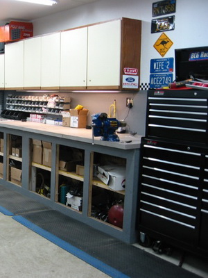 Посмотрите на фото верстака для гаража – он должен находиться рядом с источником света, так как рабочее место во время работы в гараже должно хорошо освещаться — это необходимо для точности выполнения работы и собственной безопасности. Кроме того, с точки зрения пожарной безопасности важно после окончания работ выключать свет и все электро- и нагревательные приборы. Отработанное сырье необходимо своевременно убирать с рабочего места и выносить из гаража.