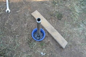- к первой трубе прикручивают вторую и так продолжают до тех пор, пока не достигнут водоносного горизонта. Чтобы понять, что появилась вода, в трубу опускают веревку с привязанным к ней небольшим отрезком трубы, который при контакте с водой издает специфический хлопок;