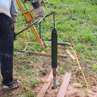 Если к участку еще не подведено электричество, но поначалу для подъема воды можно воспользоваться ручным насосом. Они бывают поршневыми и штанговыми. Первые смогут качать воду с глубины не более 7 м, вторые поднимут воду с глубины до 30м.