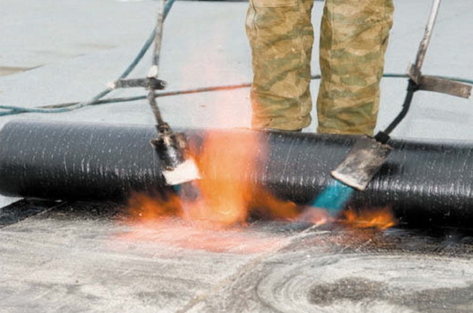 При укладке рулонного гидроизоляционного материала на основе битума его необходимо прогреть с помощью газовой горелки: материал расплавится, при этом швы исчезнут, а сам он прикрепится к изолируемым поверхностям.