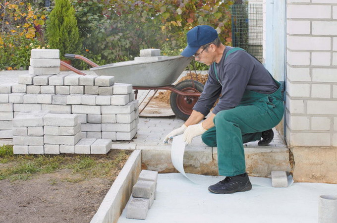 Устройство отмостки для защиты фундамента от проникновения влаги на фото.
