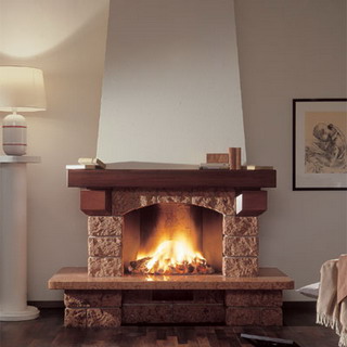 Как видно на фото, в камине с открытой топкой пламя горит только вдоль задней стенки, что полностью исключает проникновение дыма в помещение. Есть конструктивные решения, позволяющие повысить теплоотдачу открытого камина: класть боковые стенки таким образом, чтобы они сужались к задней стенке; с определенной высоты наклонять заднюю стенку вперед.