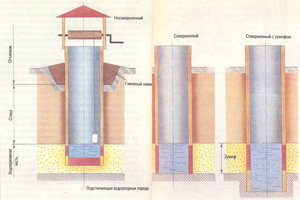 Конструктивно шахтные колодцы для воды состоят из таких частей, как: