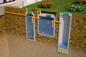 Сооружения с подземной фильтрацией сточных вод включают септик и систему подземной фильтрации. Септик представляет собой емкость любой формы (круглой, квадратной), выложенную кирпичом, природным камнем, бетоном или собранную из железобетонных колец.