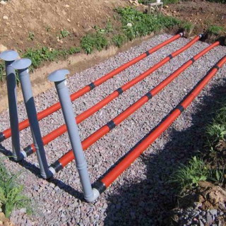 Распределительный трубопровод формируют из пластмассовых, асбоцементных или керамических труб диаметром 100—125 мм и укладывают с уклоном. Глубина заложения труб составляет, как минимум, 50 мм.