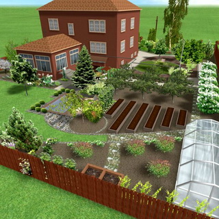 В зоне сада и огорода располагаются грядки, парники или теплицы, плодовые кусты и деревья.