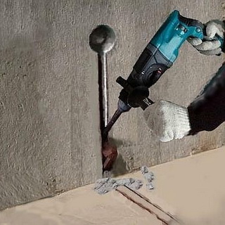 С помощью перфоратора проделывают отверстия в межкомнатных перегородках.