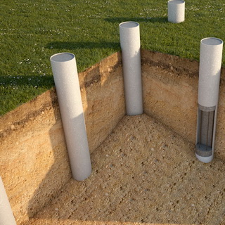 Свайные фундаменты – это разновидность столбчатых оснований. Чаще всего их применяют при строительстве одно-двухэтажных домов на слабых грунтах при высоком уровне грунтовых вод. Фактически, разница между столбом и сваей состоит в том, что столбы устанавливают на определенной поверхности (в нашем случае—на дне котлована или траншей), а сваи забивают, а если не используется тяжелая техника, врезают или попросту заливают в грунт.