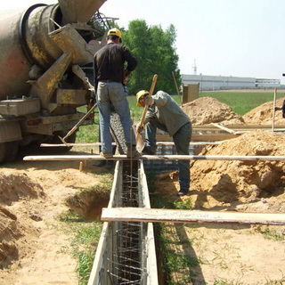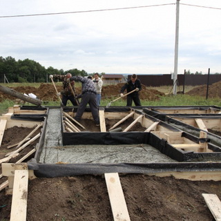 По технологии заливки ленточного фундамента эту процедуру лучше начинать заливать сразу же после рытья траншей. Однако перед тем как заливать ленточный фундамент под дом, нужно удалить со дна воду и разжиженный грунт. При устройстве песчаной подушки особое внимание необходимо уделить послойному (100—150 мм) трамбованию песка с поливкой каждого слоя водой. Если же грунт песчаный, то по дну траншеи можно сразу залить выравнивающий бетонный слой толщиной до 100 мм, на который затем укладывается гидроизоляция. После этого желательно по периметру дома и под внутренними несущими стенами установить опалубку необходимой высоты Опалубка должна быть устойчивой, прочной, жесткой, чтобы выдерживать нагрузку свежеуложенного бетона. Конструкция опалубки должна быть такой, чтобы ее можно было легко собирать и разбирать, не вызывая повреждения забетонированных изделий и затруднений по установке арматуры, укладке и уплотнению бетонной смеси.