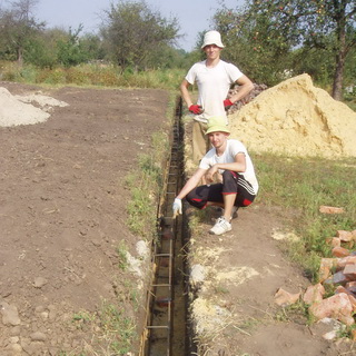 Натянув между забитыми колышками шпагат, вы получите оси здания. Отступив от них в обе стороны на половину расчетной толщины фундамента, вы найдете положение его стенок. Впрочем, разбивку плана траншей под ленточный фундамент лучше проводить с учетом допустимой крутизны земляных откосов. Так, например, в плотных глинистых и суглинистых грунтах высота стенок траншеи может достигать 1м. Кроме того, необходимо предусмотреть земляные откосы (то есть делать стенки расширяющимися кверху) или временно крепить стенки досками или щитами.