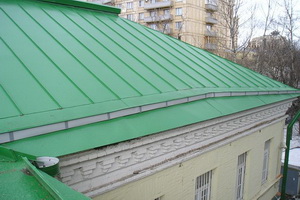 К основным достоинствам металлической кровли относятся: сравнительная легкость укладки, низкая подверженность атмосферным воздействиям, отсутствие эксплуатационных расходов и небольшой вес. При этом фальцевание и крепление к обрешетке с помощью кляммеров при устройстве металлической кровли позволяют уложить весь кровельный материал без единого отверстия. Надо отметить, что многие, например гофрированные, кровельные материалы крепятся к обрешетке с помощью гвоздей, саморезов и других приспособлений, насквозь пробивающих покрытие. В этих случаях серьезную проблему представляет гидроизоляция мест крепежа.