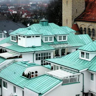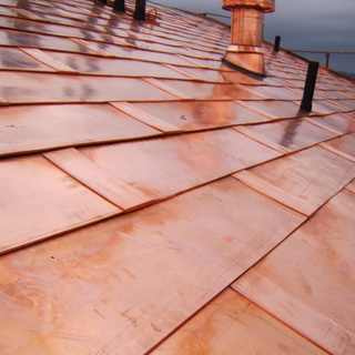 Наиболее популярным листовым кровельным металлом является медь. Еще в древние времена ею покрывали крыши жилых домов, церквей и соборов, и на многих из этих построек кровля сохранилась до нынешнего времени. В последнее время этот цветной металл приобрел огромное признание среди архитекторов и дизайнеров, проектирующих современные коммерческие и жилые объекты, а также осуществляющих реставрацию памятников архитектуры. Как утверждают специалисты, медная кровля является самым стойким и идеальным покрытием для пологих крыш с наклоном до 10°.