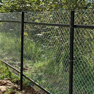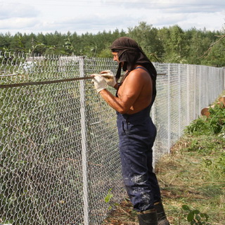 Перед тем как установить забор из сетки-рабицы, раскатайте рулон и навесьте сетку на забор, временно фиксируя на столбах. Затем натяните сетку и привяжите к направляющим кусками оцинкованной проволоки. К верхней направляющей сетку крепят через каждые 150—200 мм, а к нижней — через 300—400 мм.