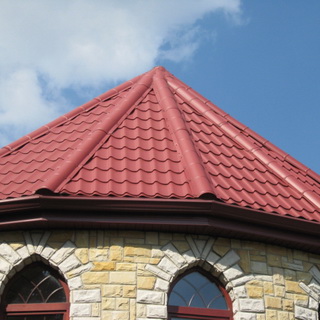 Несмотря на то, что кровля крыши металлочерепицей выполняется из листов достаточно большого размера, этот материал можно использовать, в том числе и для обустройства сложных кровель. Листы легко режутся, что позволяет сделать качественное покрытие округлых участков, ендов, выступающих слуховых и мансардных окон, башенок и т. п.